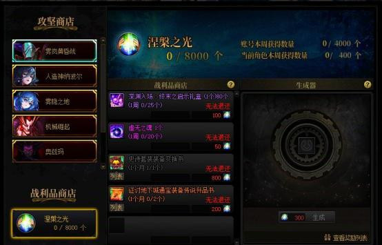 雾神团本属于上版块的过气团本,无任何门槛,主若是用来获取涅槃之光的。