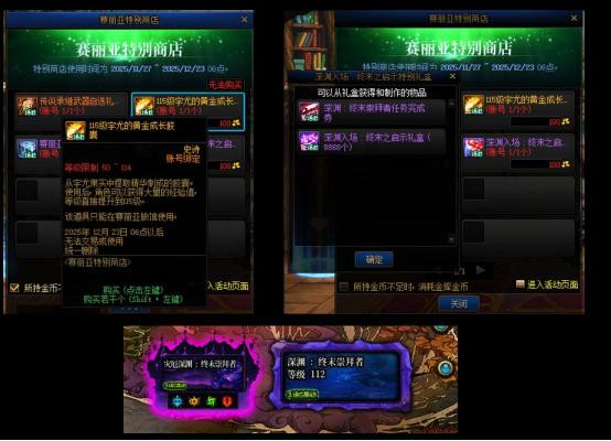追想玩家不错第一本事使用黄金成长胶囊升到115级,然后通达商店中的深谷入场:最后之启示至极礼盒,领取8888个深谷票和深谷入场任务完成券,之后就不错胜利去刷深谷爆装备了。
